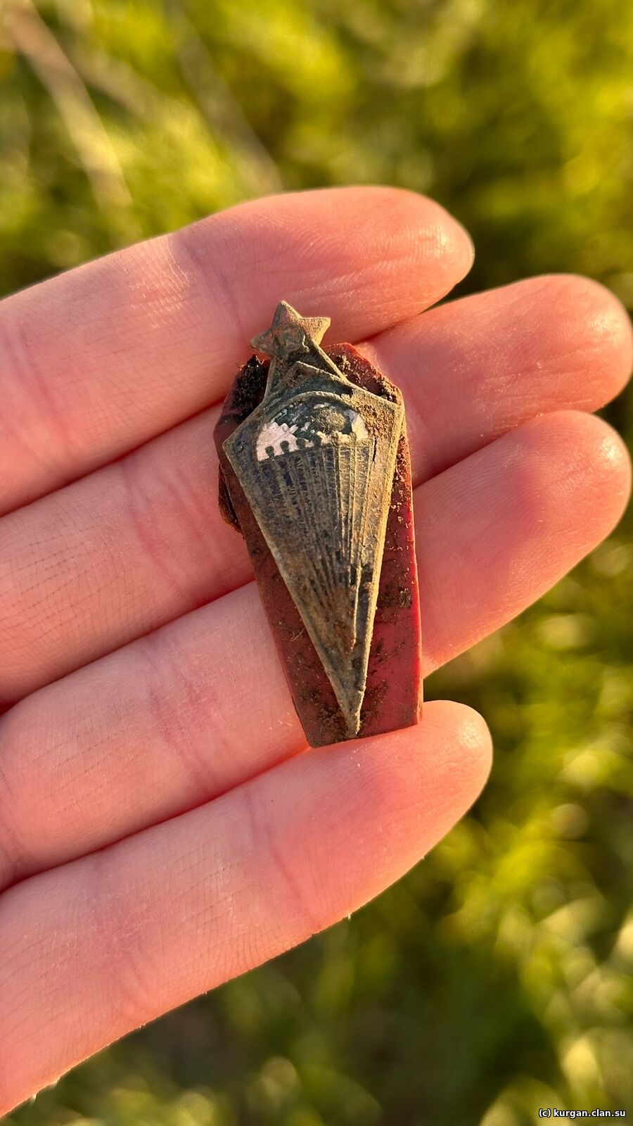 Был вручен до войны Григорию Евдокимовичу Коваленко. Найден в Бельском районе Тверской области летом 2023 г. на фрагм...